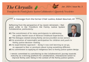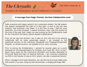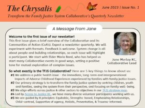 The Chrysalis is our quarterly newsletter providing updates about the Collaborative and its Communities of Action (CoA’s). System change is all about people and building relationships, so each issue also showcases one of our participants and describes our upcoming events. Please subscribe and keep in touch!
